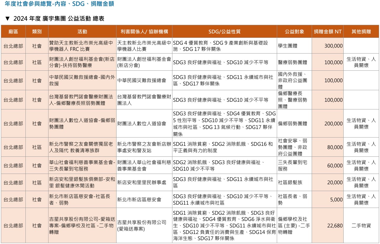 另外,2024年廣宇集團參與北科大與基隆市政府攜手合作於基隆嶼舉辦ESG放魚淨灘公益活動。活動邀請約70位企業主及專業經理人參與,